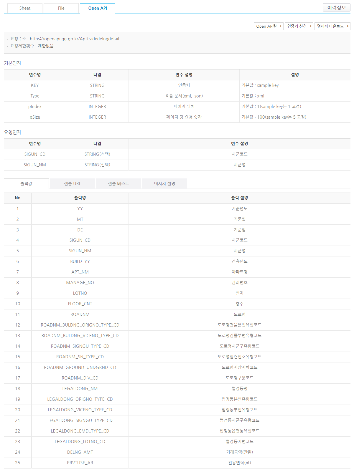 url = 'https://openapi.gg.go.kr/Apttradedelngdetail'