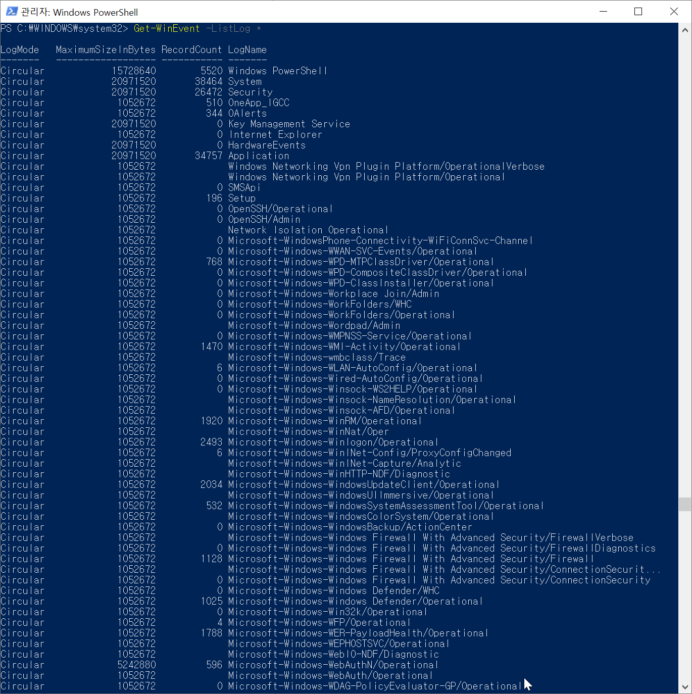 - PowerShell의 Get-WinEvent 명령