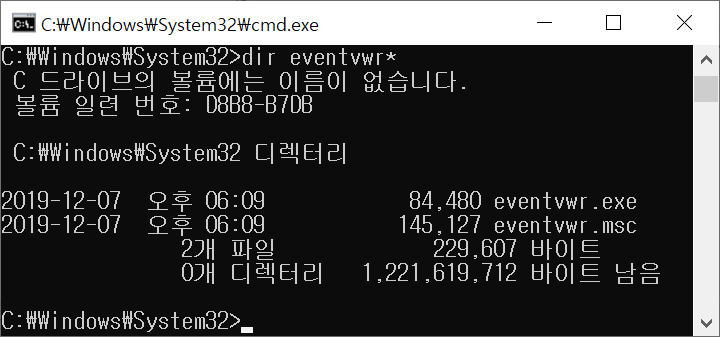 윈도우 이벤트 로그파일들은 %SystemRoot%\System32\winevt\logs에 위치한다.