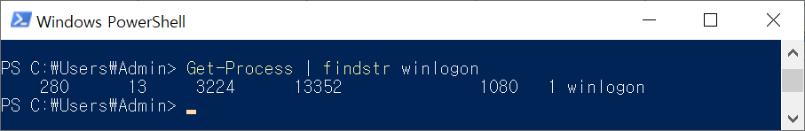 Get-Process 명령을 pipe를 이용하여 필터링하면 특정 프로세스의 실행을 확인할 수 있습니다.