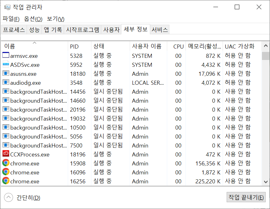 이상과 같이 윈도우에서 실행 중인 프로세스 목록을 확인하는 방법을 소개했습니다.