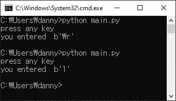 이상과 같이 윈도우 커맨드콘솔에서 파이썬 프로그래밍으로 키입력을 감지하는 방법을 소개했습니다.