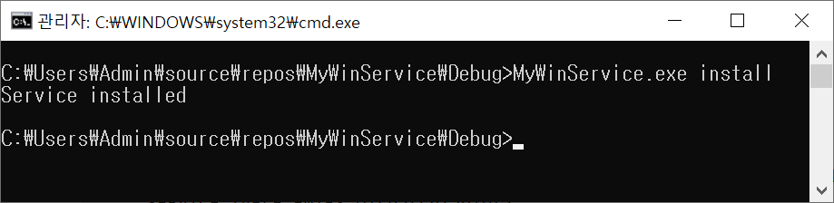 솔루션을 빌드한 후 관리자권한으로 "cmd"창을 열고 다음과 같이 실행합니다.