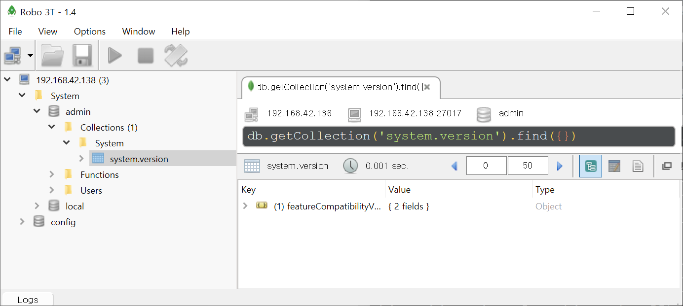 위의 그림과 같이 외부의 윈도우 호스트에서 Robo 3T와 같은 GUI도구를 이용하여 DB를 다룰 때 편리합니다.