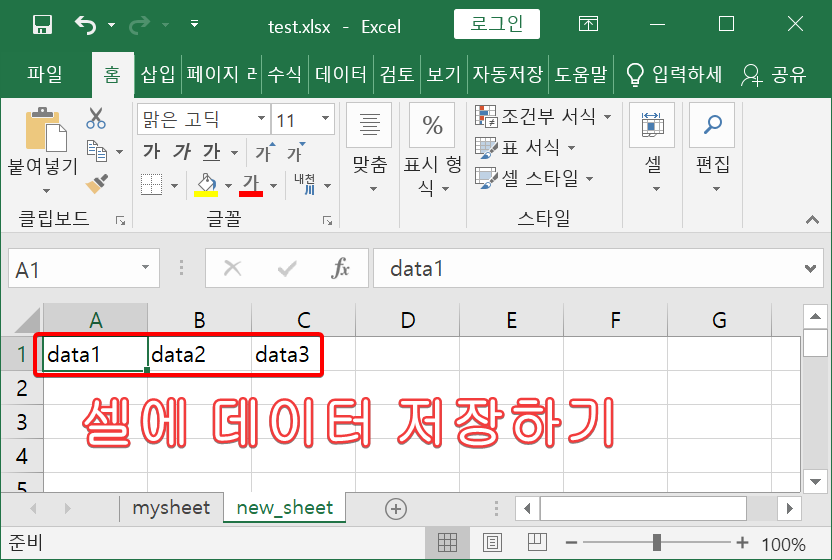 이제 sheet도 새로 생성했으니 cell에 데이터를 저장하는 코드를 알아보겠습니다.